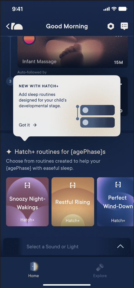 As a start, they developed a set of curated sleep routines for the baby demographic (3-12 months old) using Hatch+ content.